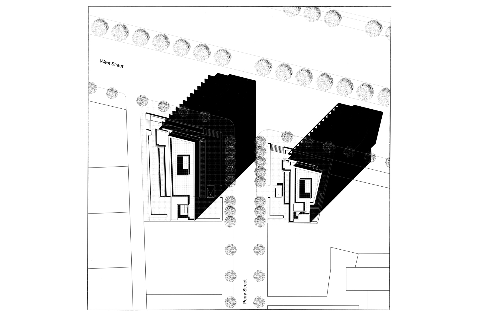 The two towers of this residential complex are located in Greenwich Village, overlooking the Hudson River and the newly renovated Hudson River Park, which provides a mixture of green and paved open spaces for walkers, joggers, and cyclists all the way from Battery Park City to Fifty-ninth Street. The intimate scale of the building respects its urban context and establishes it as a gateway to the historical fabric of Greenwich Village.