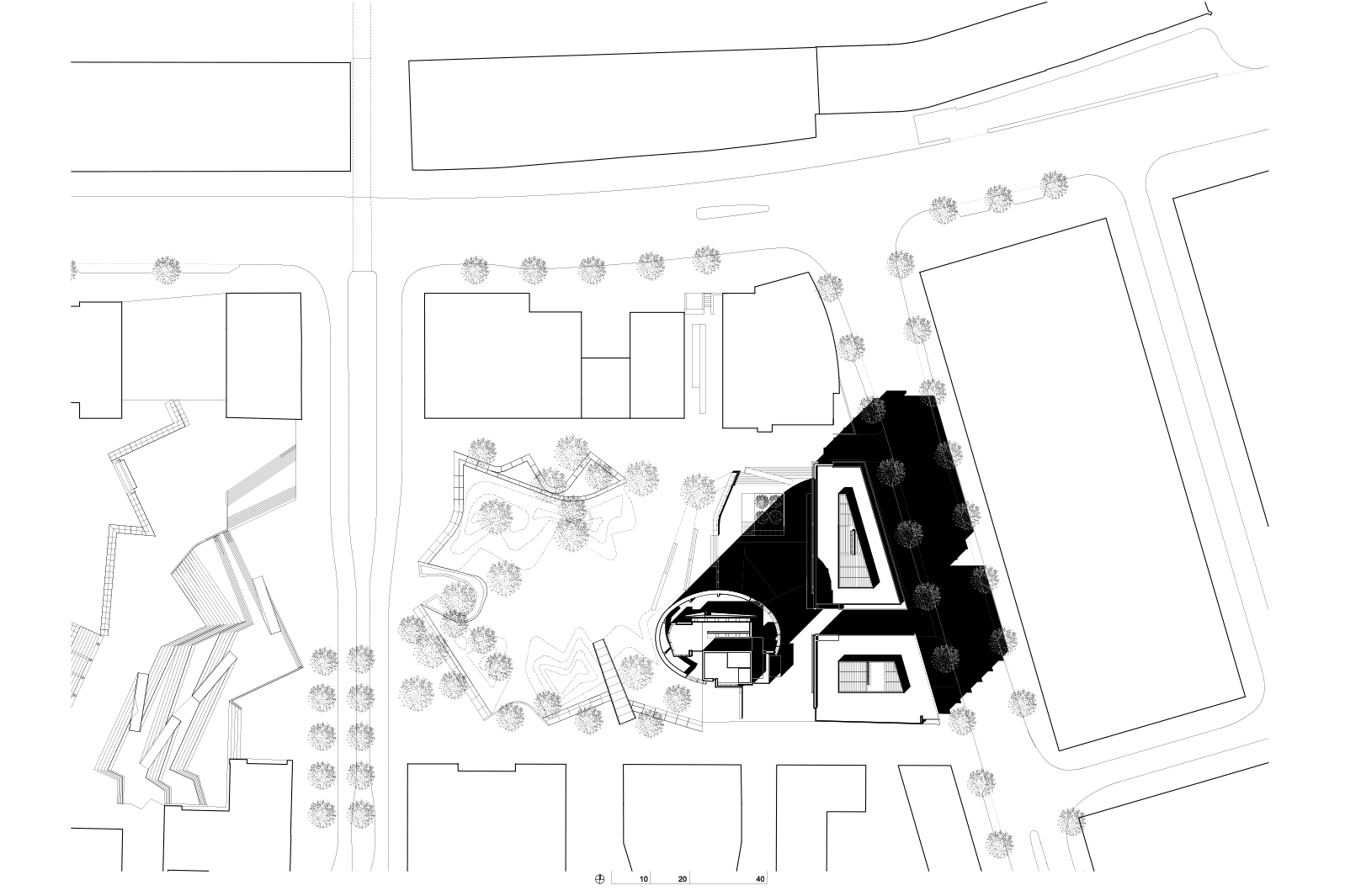 Located in Hamburg’s HafenCity, Coffee Plaza is a center for international coffee trade. The project includes the headquarters for Neumann Kaffee Gruppe, housed in a 12-story, oval-shaped tower, along with two additional office buildings, underground parking and a large public plaza. Situated on a podium overlooking a prominent park, the tower creates a partition between the existing greenspace and the new urban plaza, harmoniously integrating the new development into its surroundings and cementing HafenCity’s status as a business, commercial, and cultural center for the 21st century.