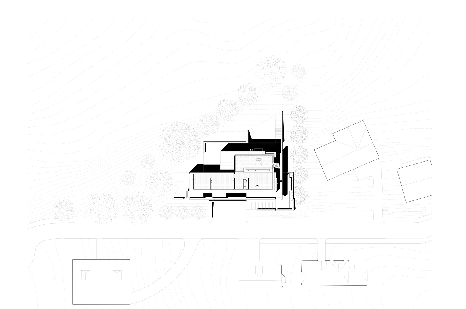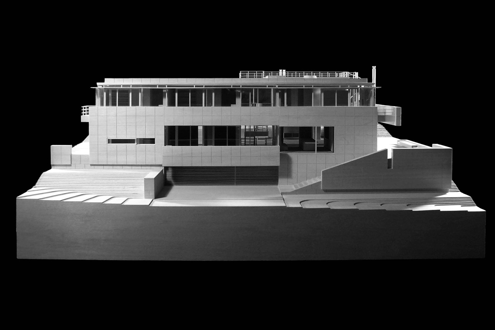 The site for this private house is a sloped, wooded property located in a quiet area outside the city center. A masterful composition allows the harmonious combination of both private and communal living spaces within the overall program of the house, while two hallmarks of Meier Partners residential design—the seamless integration of indoor and outdoor spaces and the celebration of abundant natural light—are achieved through a series of generous terraces and carefully designed openings selectively introduced into the building envelope.