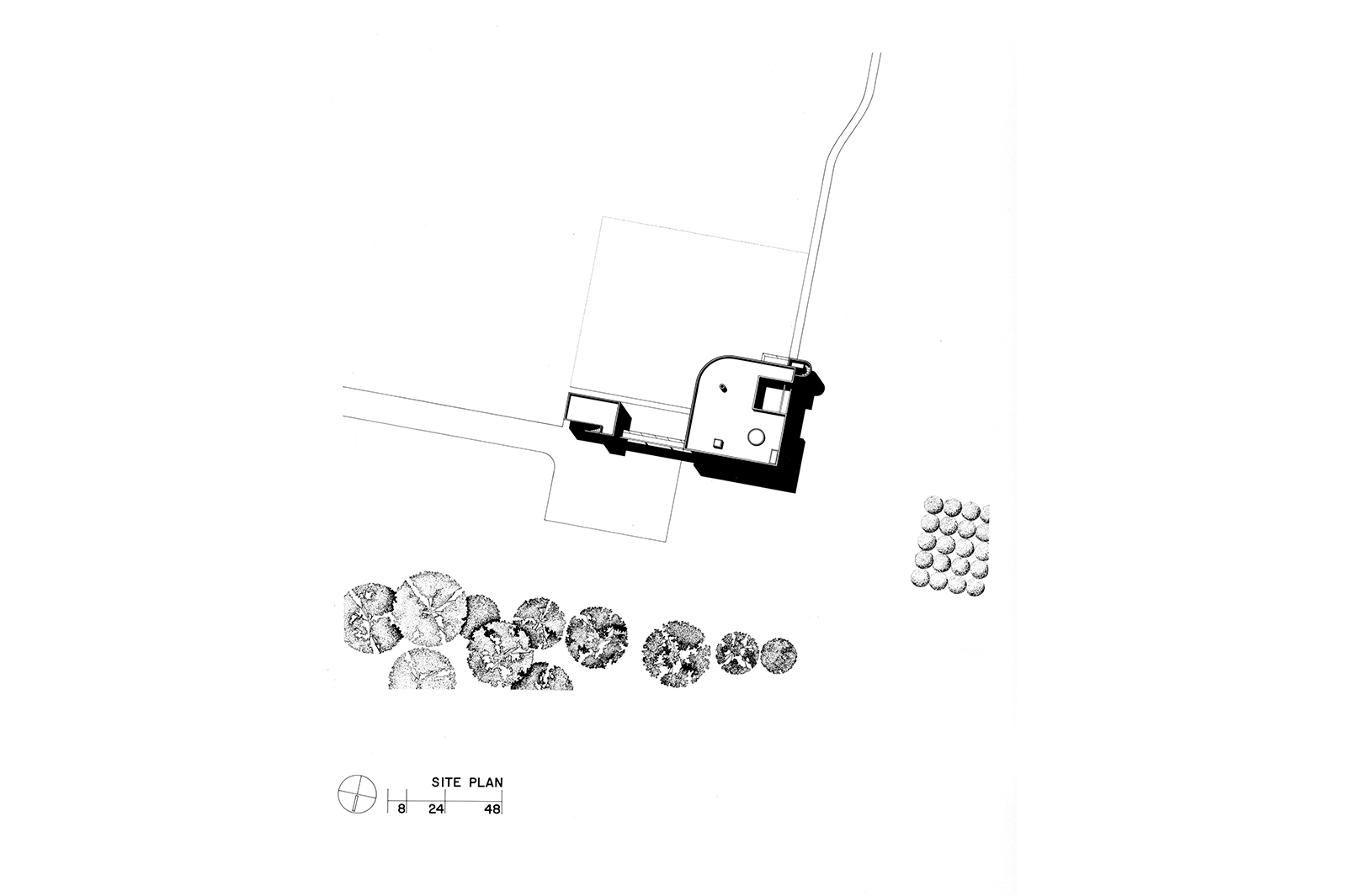 One of Richard Meier’s earliest built works, the Saltzman house presaged the signature style that would make him famous. Sited on a one-of-a-kind property occupying three acres of flat land near the tip of Long Island, the Saltzman House is carefully attuned to the distinguishing characteristics of its surroundings: a picturesque windmill by the shore, the open expanse of adjoining agricultural fields, and the distant Atlantic shoreline. Seen from a distance, whether by boat or during a walk along the shore, the cubic composition appears to flatten into a two-dimensional shape against the background of land and sky.